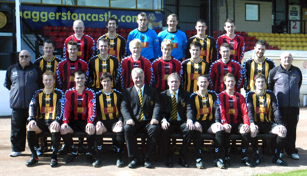 Front Row L to R Oliver Russell, Fraser McLaren, Ian Little, Brian Porteous (Chairman), Jimmy Crease (Manager), Stuart Callaghan (Captain),