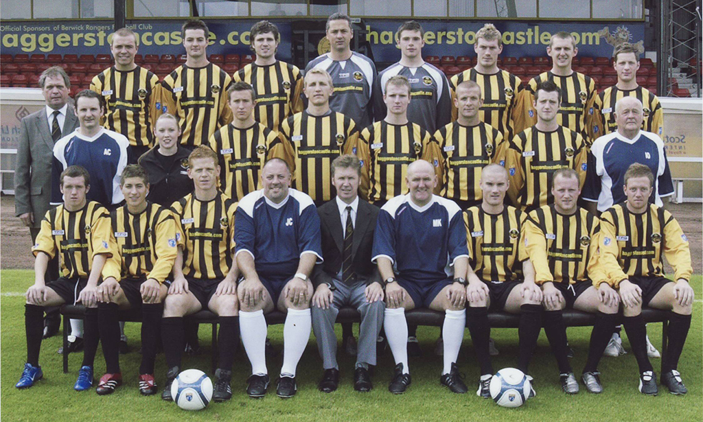 Middle Row L to R: Alex Connon (Goalkeeping Coach), Kerry Sneddon (1st XI Physio), Neil Campbell, Tom Britton, Scott Lucas, Stuart Fraser,